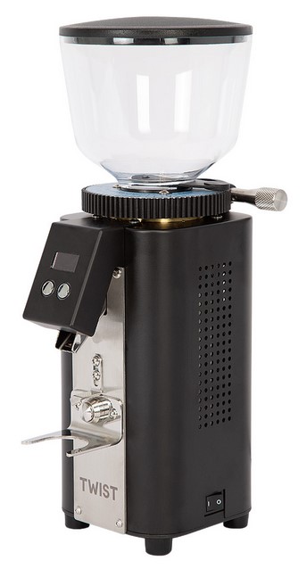 Die TWIST A54 besticht durch ihren hohen Bedienkomfort im schlanken Design. Einfach die Portionsmenge auswählen und durch Knopfdruck bestätigen. Dabei macht die höhenverstellbare Filterträger-Auflage eine freihändige Bedienung möglich. Drei Portionsmengen können programmiert werden: Single Shot / Double Shot / Single Dose. Darüber hinaus sind drei Betriebsmodi wählbar: Select Modus / Barista Modus / Single Dose Modus. Wie der Name schon verrät, haben die Stahlmahlscheiben einen Durchmesser von 54 mm. Und der Mahlgrad lässt sich stufenlos einstellen. Ein optisches Highlight ist die gebrandete Frontblende, die sich kontrastreich von dem mattschwarzen Gehäuse abhebt.